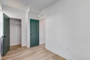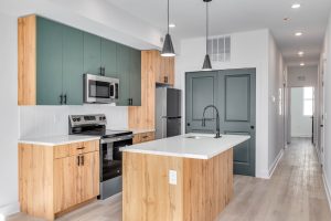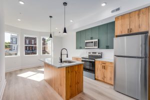 The modern kitchen is equipped with stainless steel appliances, plenty of cabinet space, and a sleek countertop, making meal preparation a breeze. Both bedrooms are generously sized with plenty of closet space.