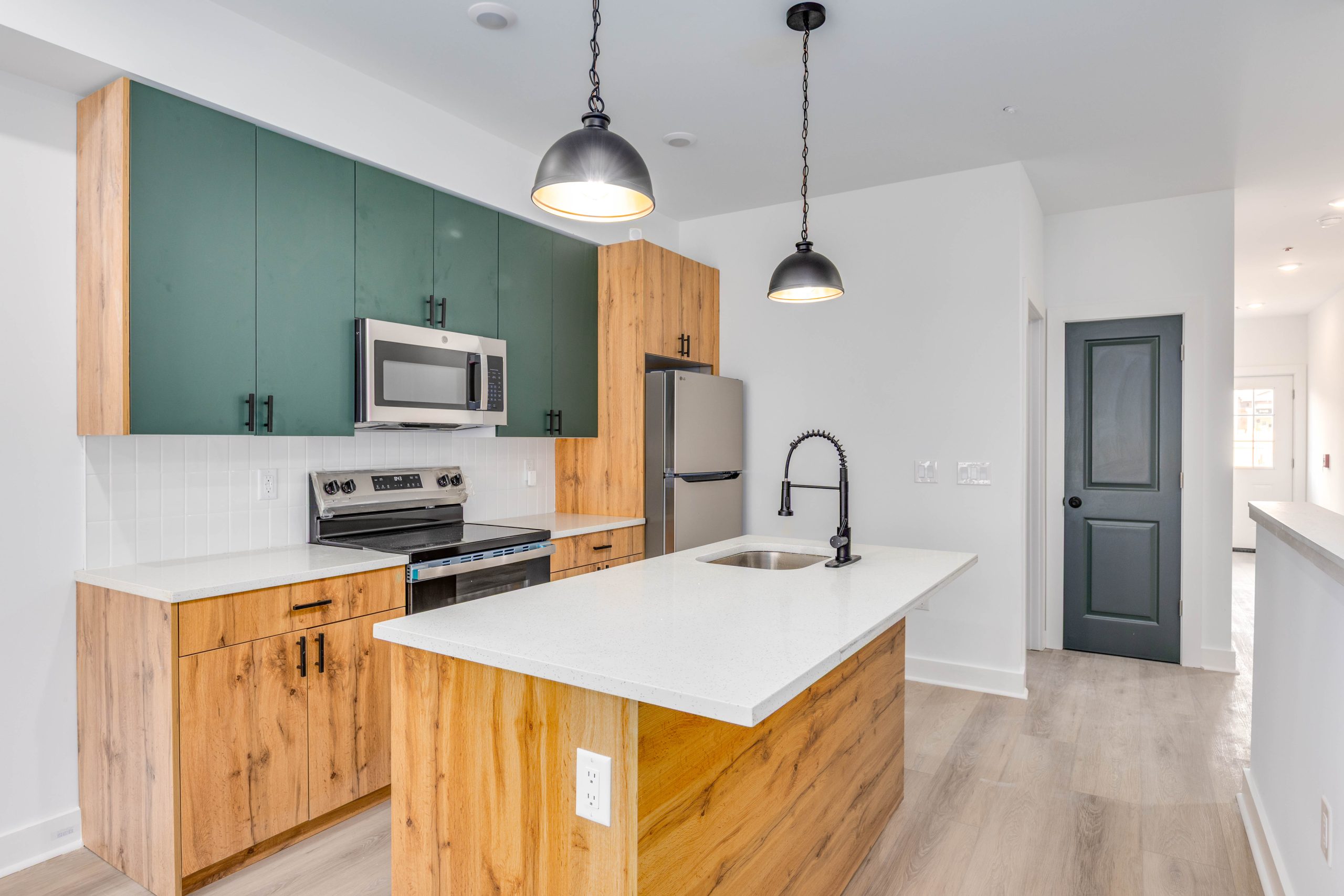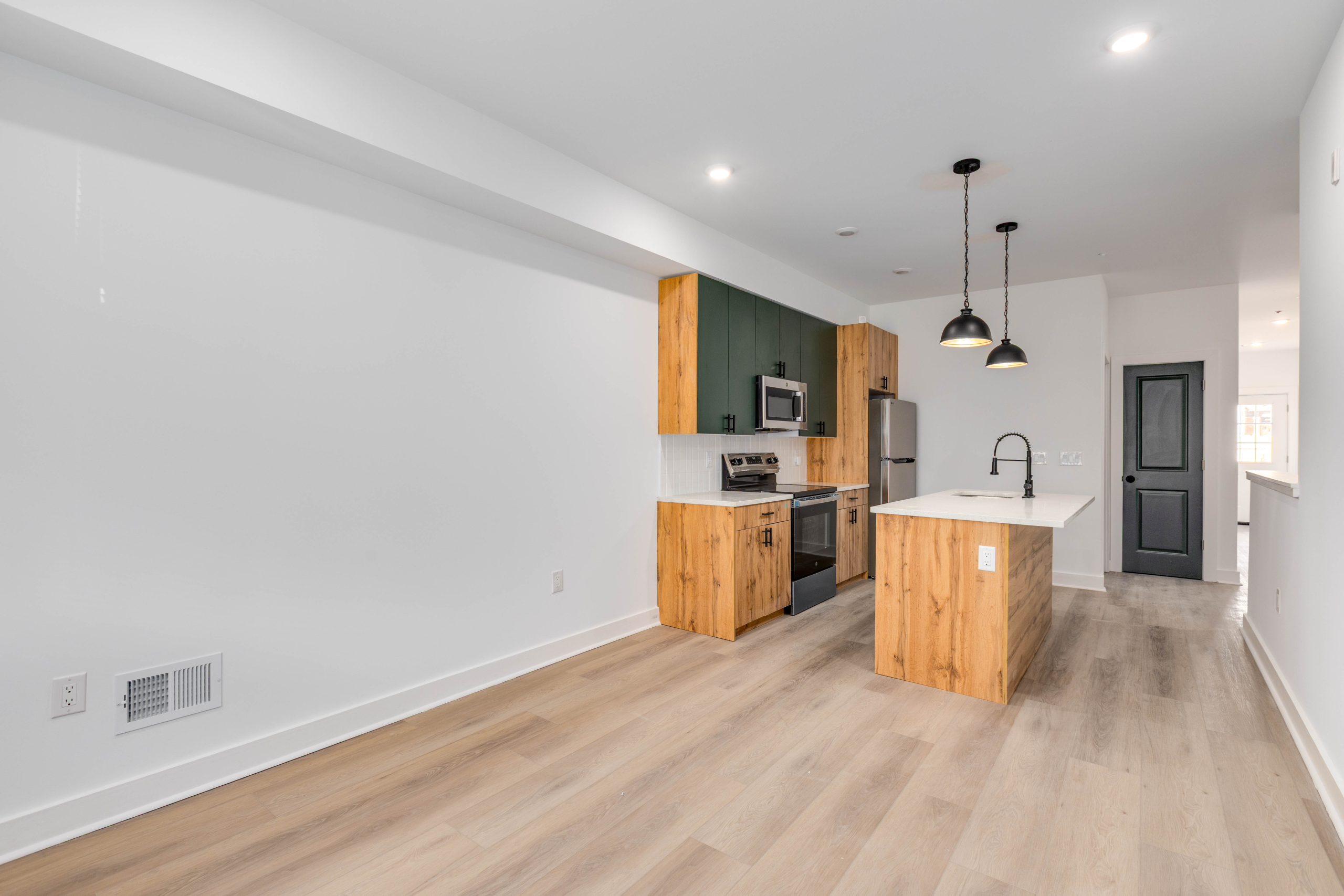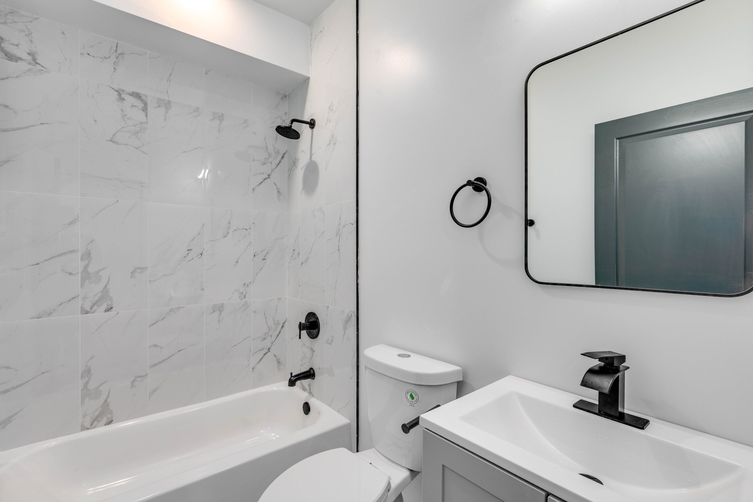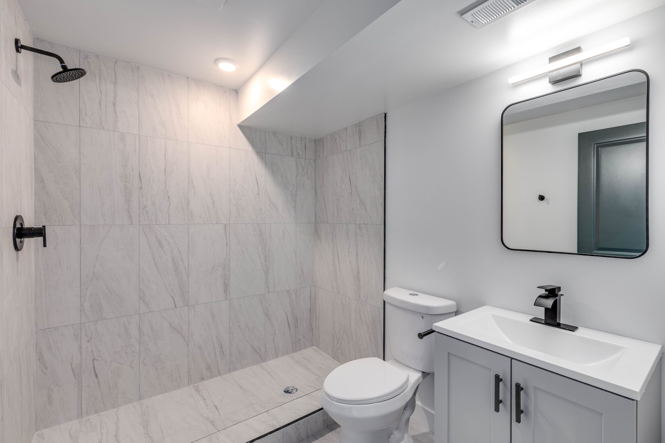 Each bathroom is stylishly designed, with modern fixtures and a clean, contemporary aesthetic. Additional amenities include in-unit laundry, central air conditioning for year-round comfort.