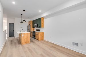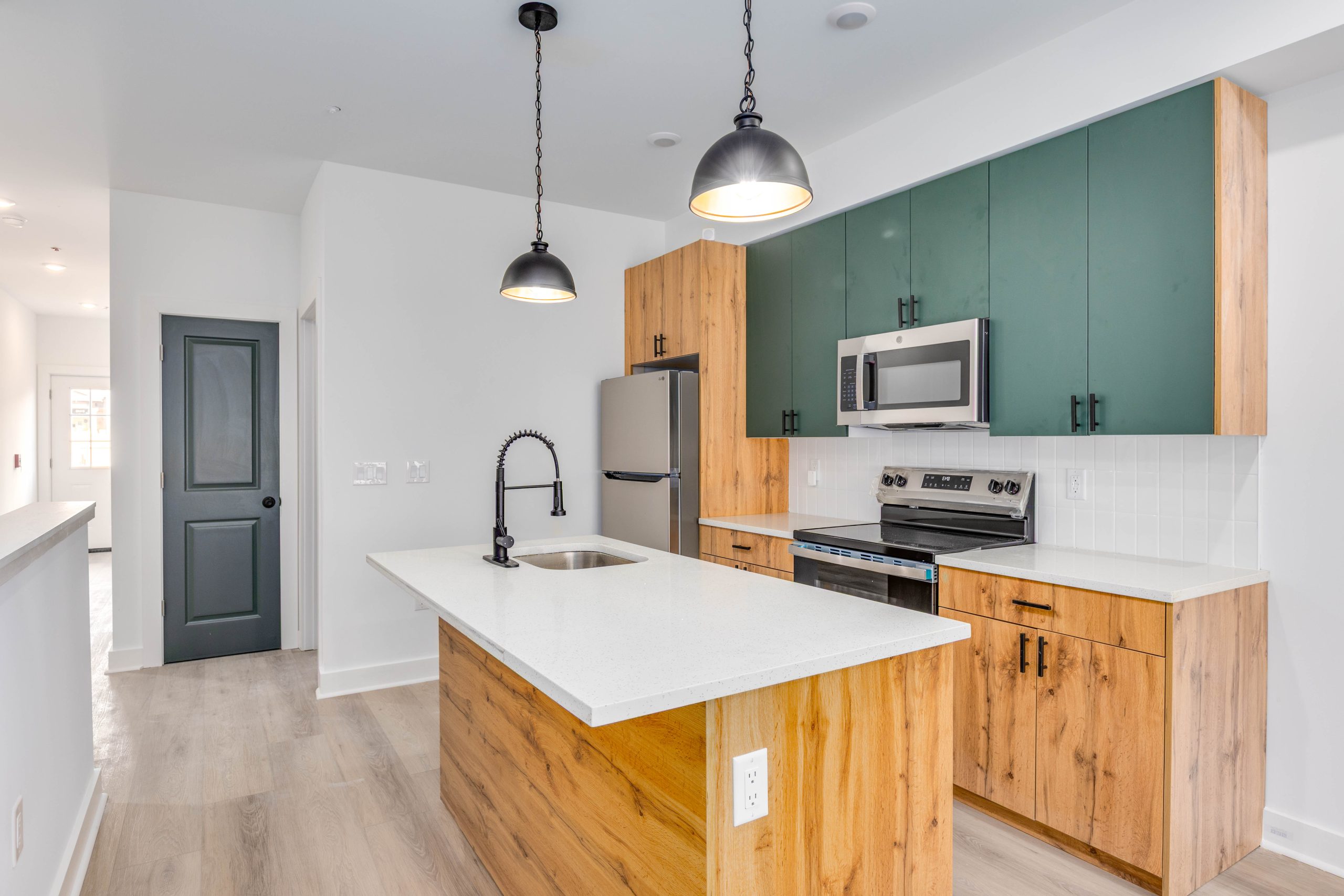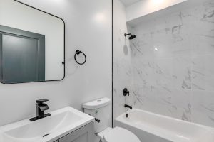 Each bathroom is stylishly designed, with modern fixtures and a clean, contemporary aesthetic. Additional amenities include in-unit laundry, central air conditioning for year-round comfort.