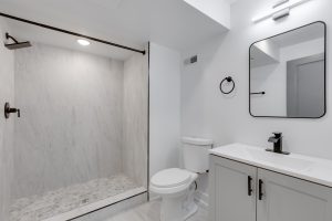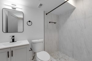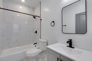 Each bathroom is stylishly designed, with modern fixtures and a clean, contemporary aesthetic. Additional amenities include in-unit laundry, central air conditioning for year-round comfort.