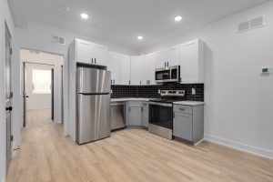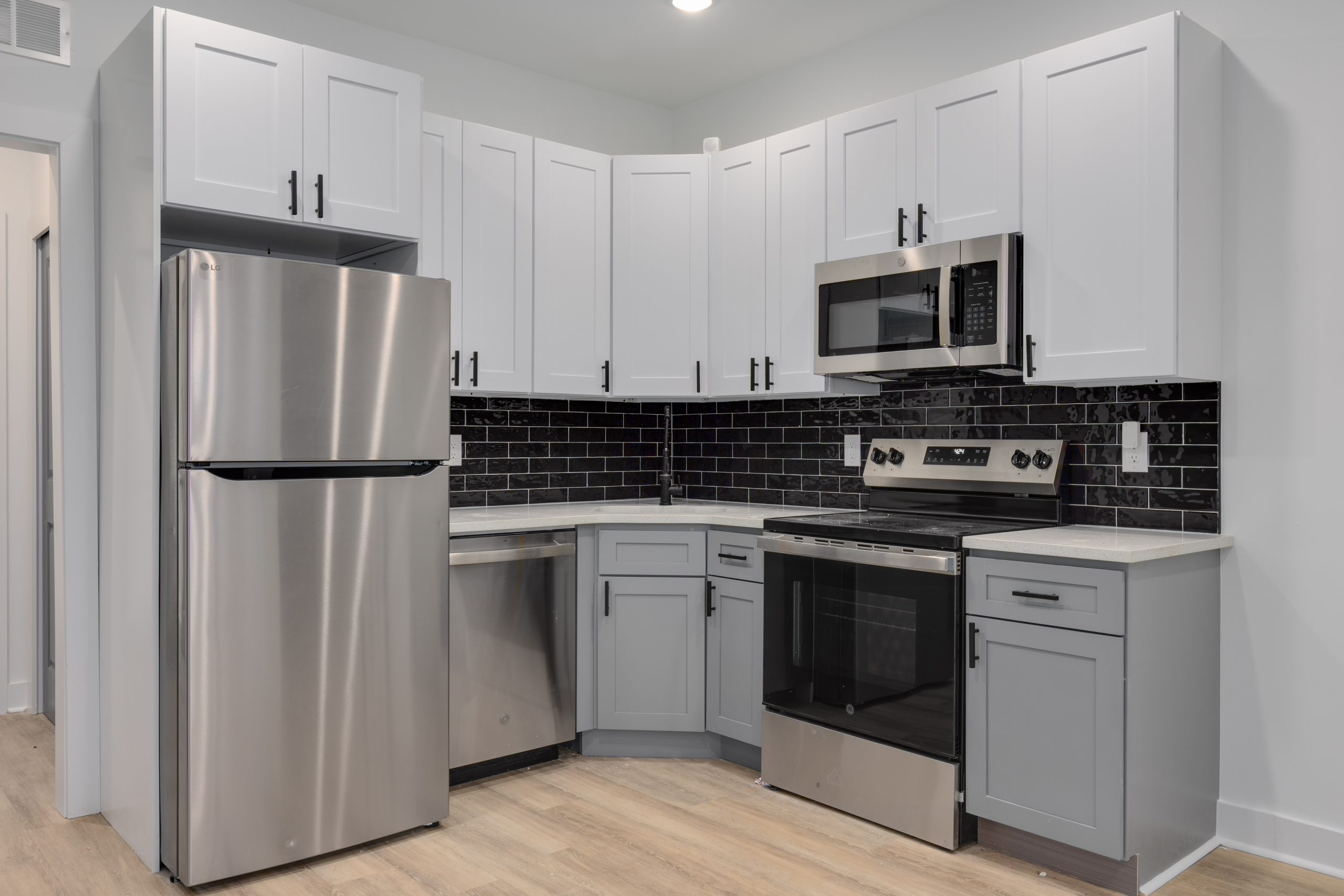 The modern kitchen is equipped with stainless steel appliances, plenty of cabinet space, and a sleek countertop, making meal preparation a breeze. Both bedrooms are generously sized with plenty of closet space.