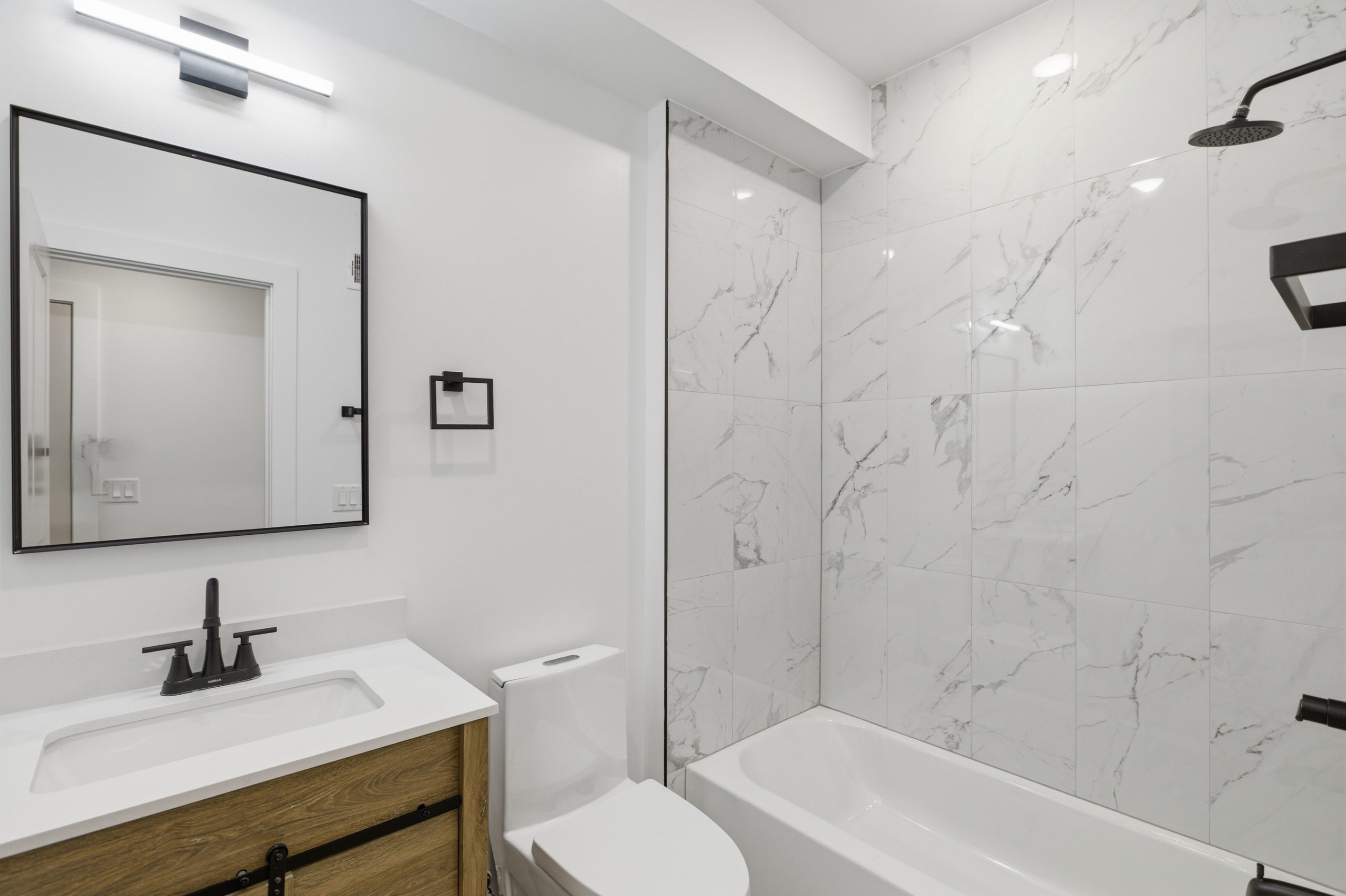 Bathroom is stylishly designed, with modern fixtures and a clean, contemporary aesthetic. Additional amenities include in-unit laundry, central air conditioning for year-round comfort.