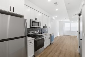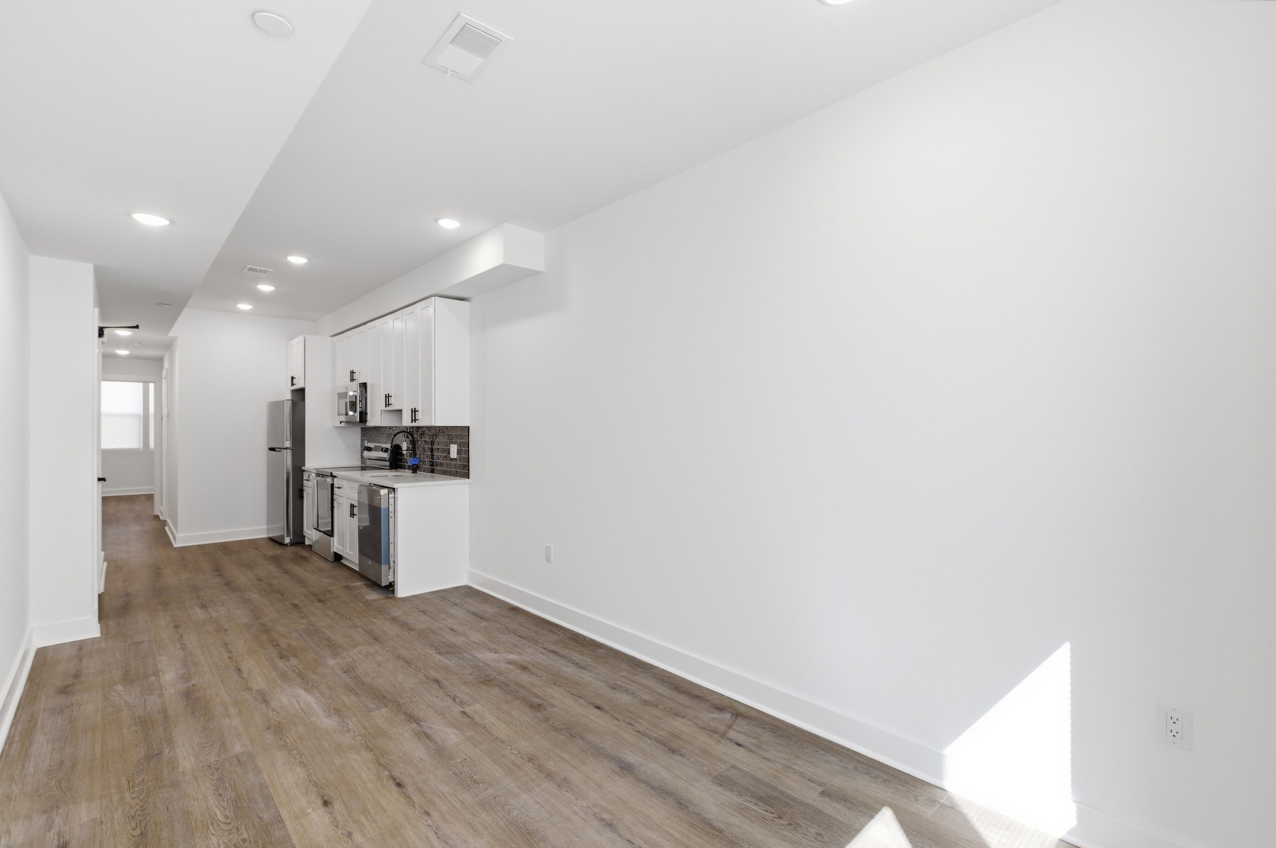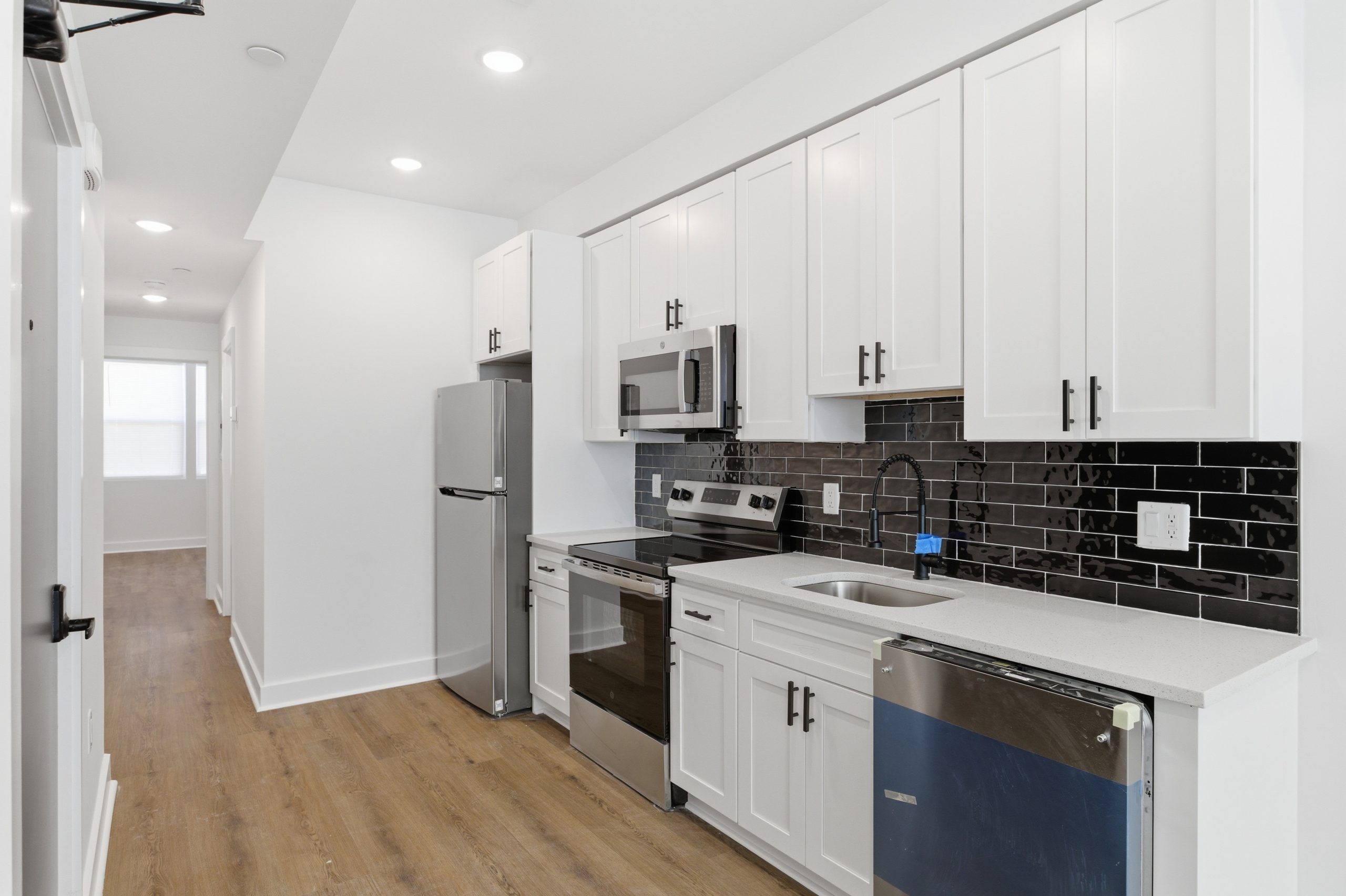 The modern kitchen is equipped with stainless steel appliances, plenty of cabinet space, and a sleek countertop, making meal preparation a breeze. Bedroom is generously sized with of closet space.