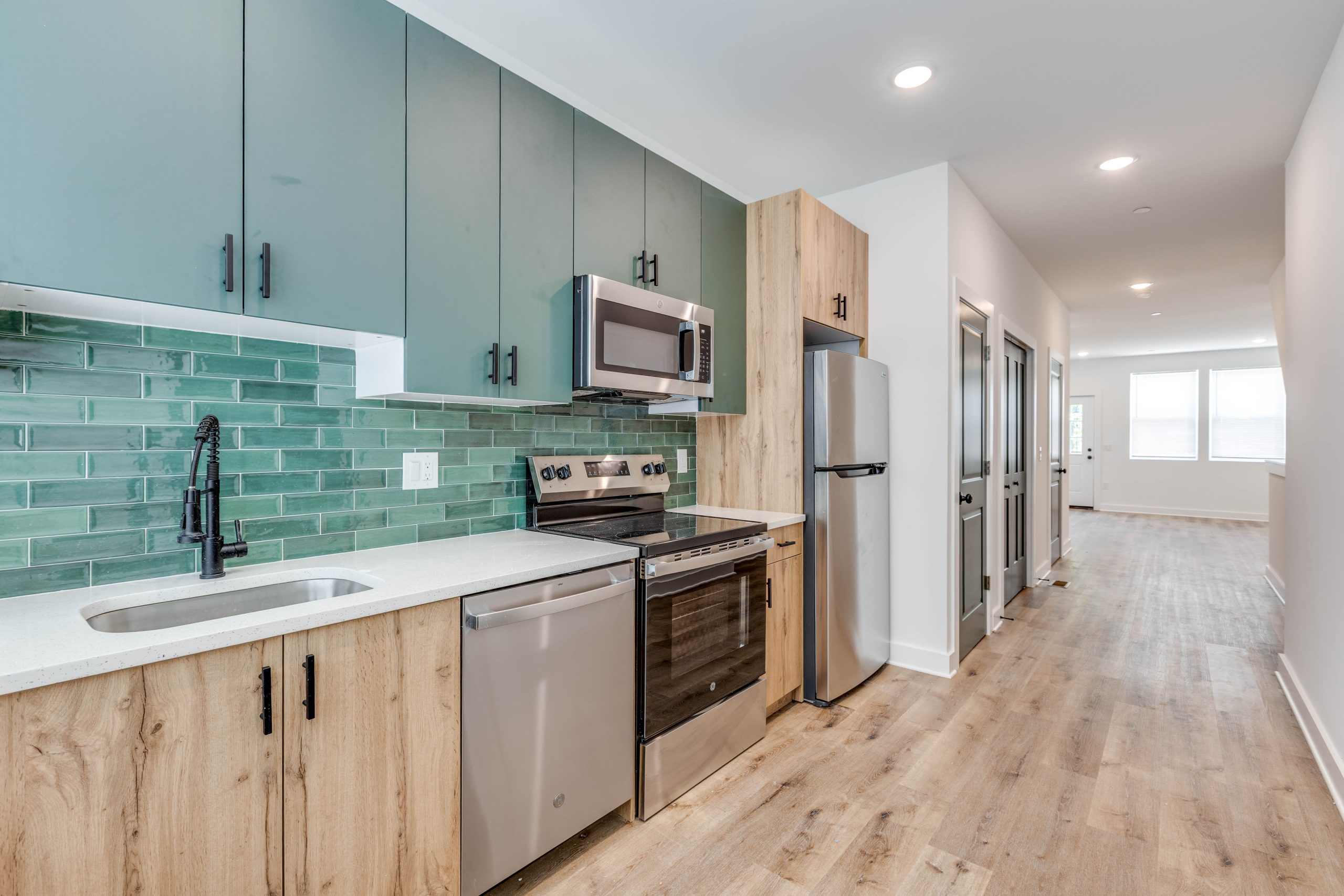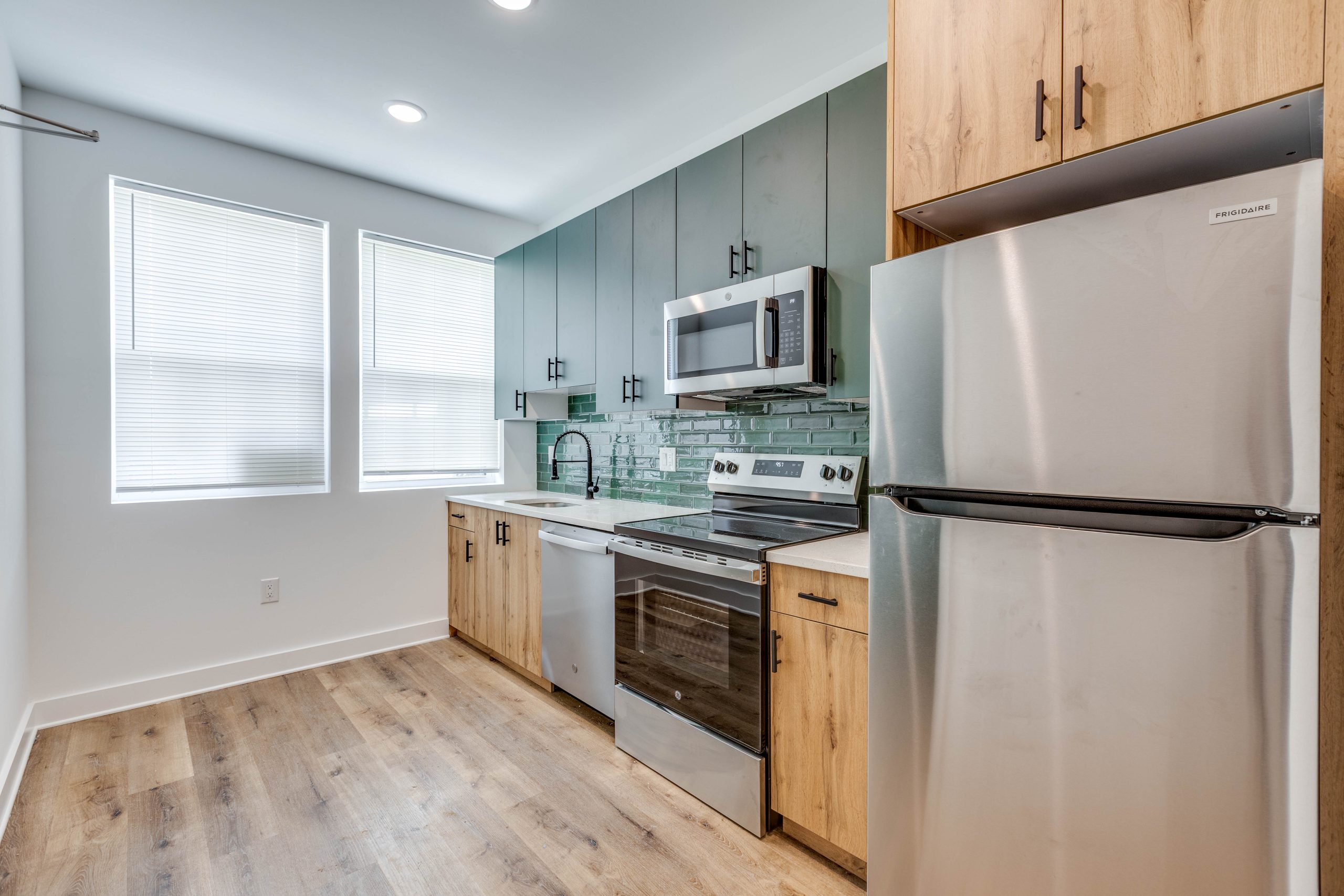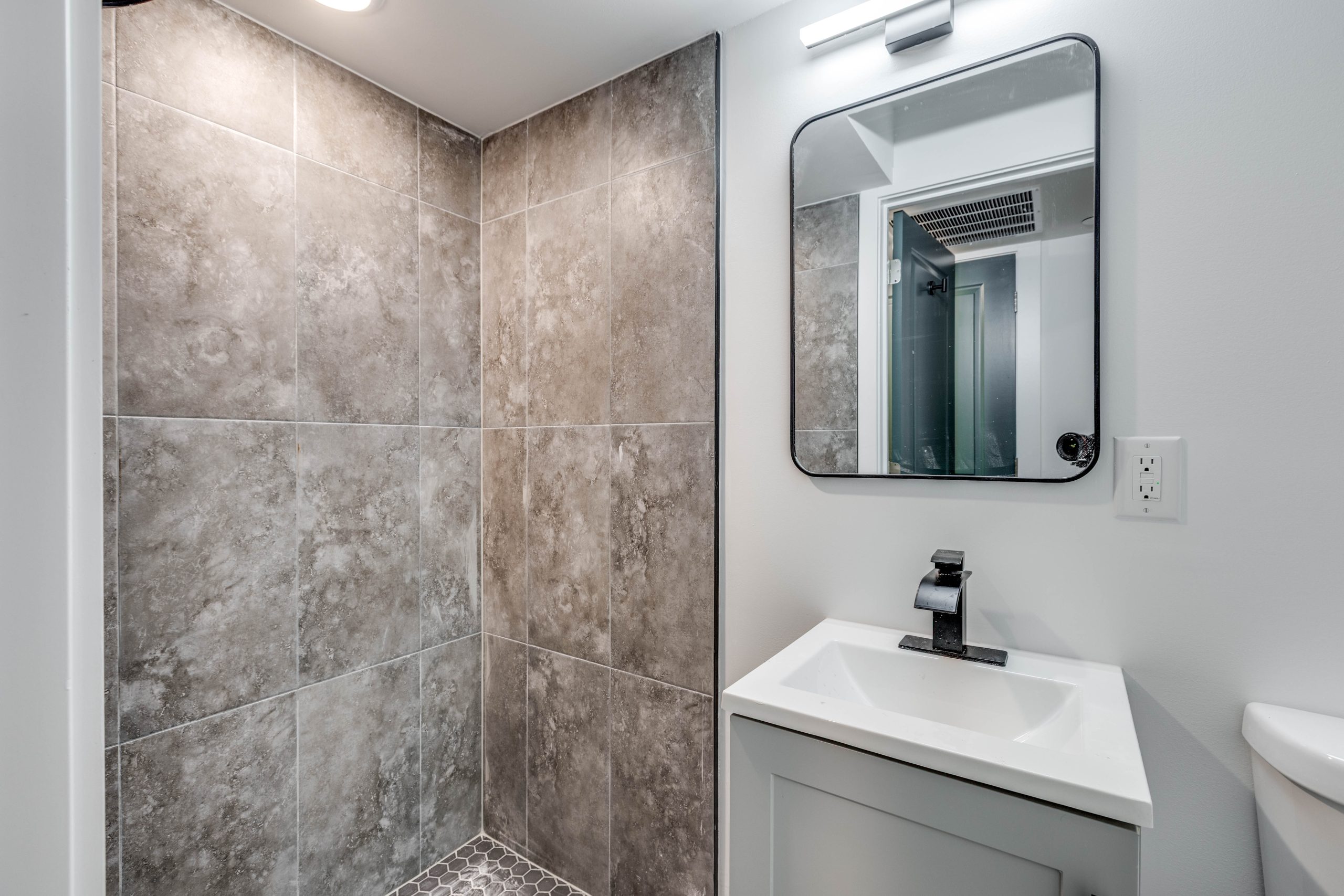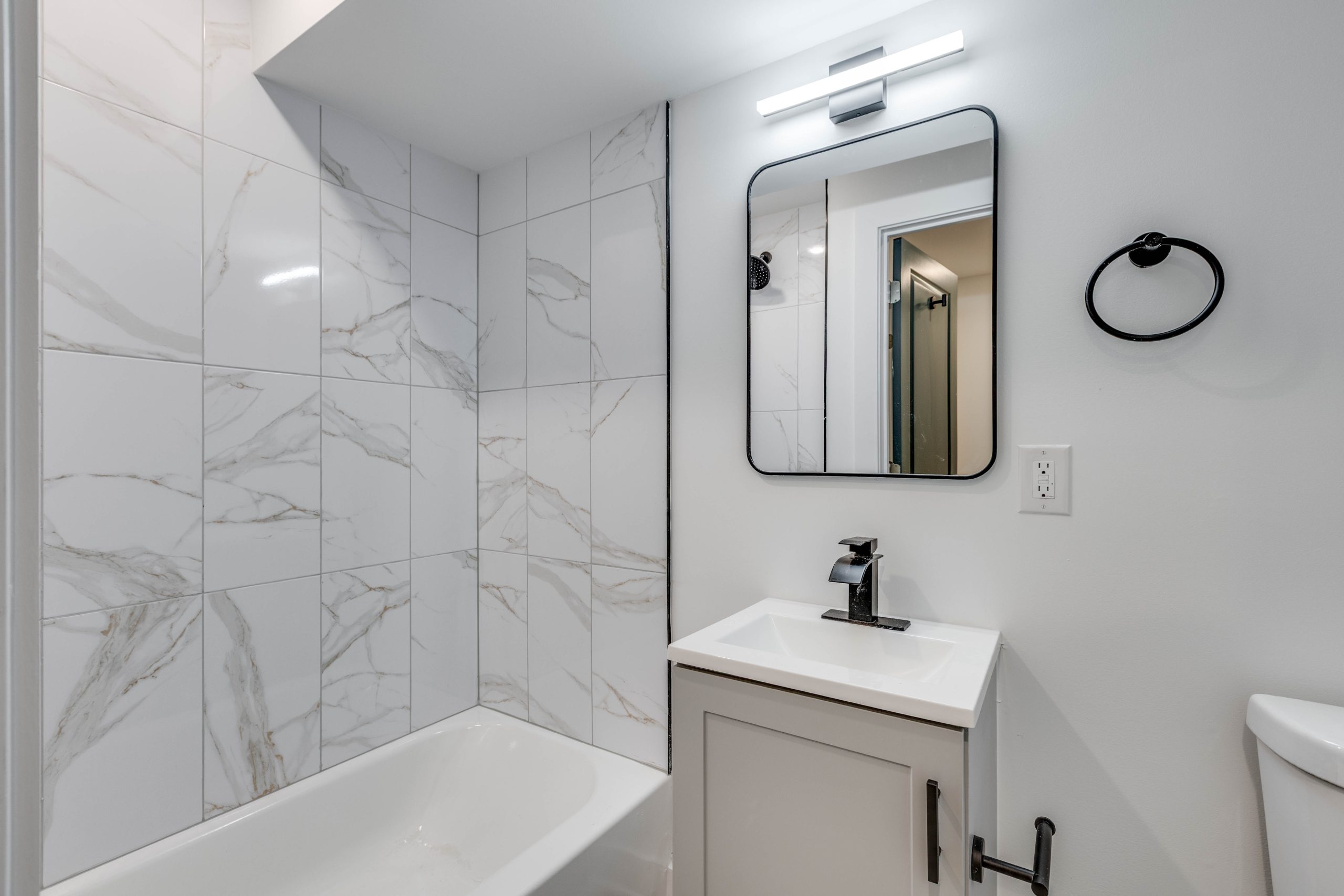 Each bathroom is stylishly designed, with modern fixtures and a clean, contemporary aesthetic. Additional amenities include in-unit laundry, central air conditioning for year-round comfort.