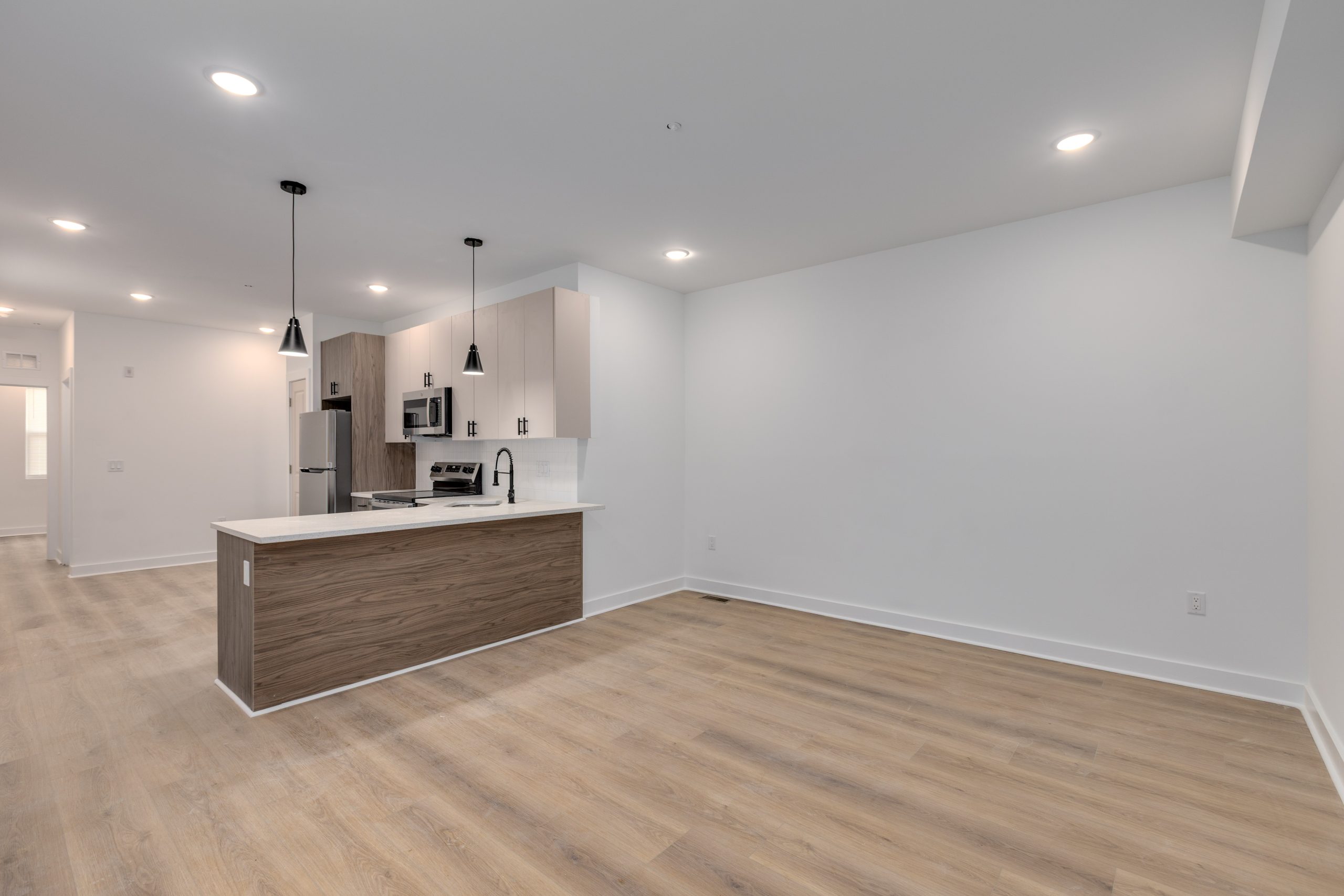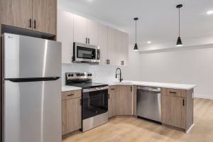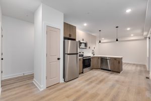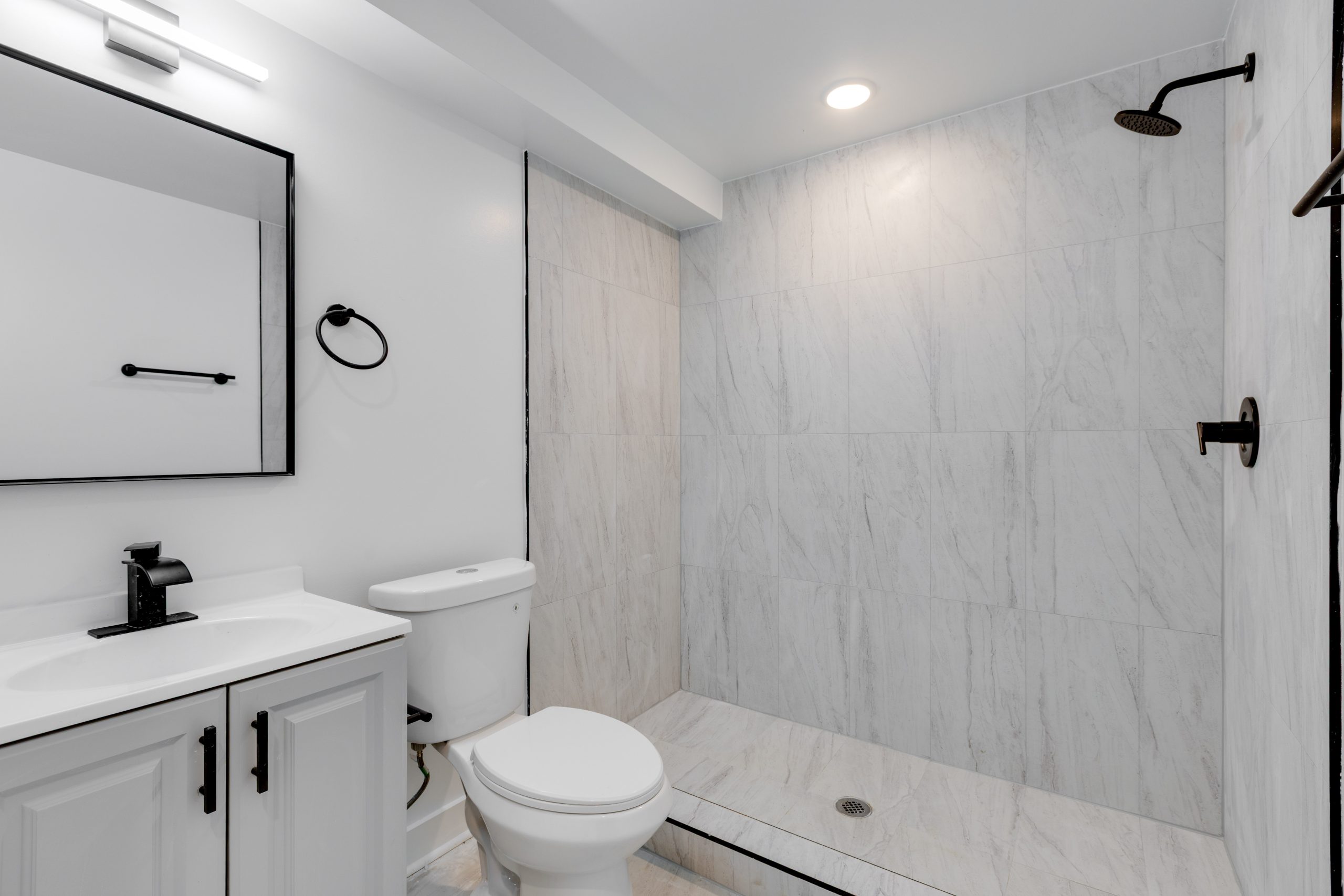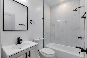 Each bathroom is stylishly designed, with modern fixtures and a clean, contemporary aesthetic. Additional amenities include in-unit laundry, central air conditioning for year-round comfort.