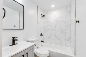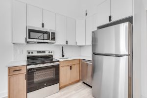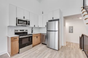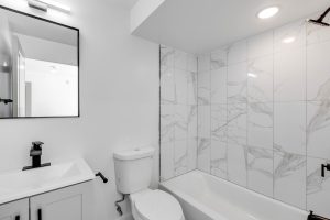 Each bathroom is stylishly designed, with modern fixtures and a clean, contemporary aesthetic. Additional amenities include in-unit laundry, central air conditioning for year-round comfort.