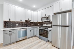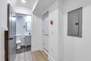 Each bathroom is stylishly designed, with modern fixtures and a clean, contemporary aesthetic. Additional amenities include in-unit laundry, central air conditioning for year-round comfort.