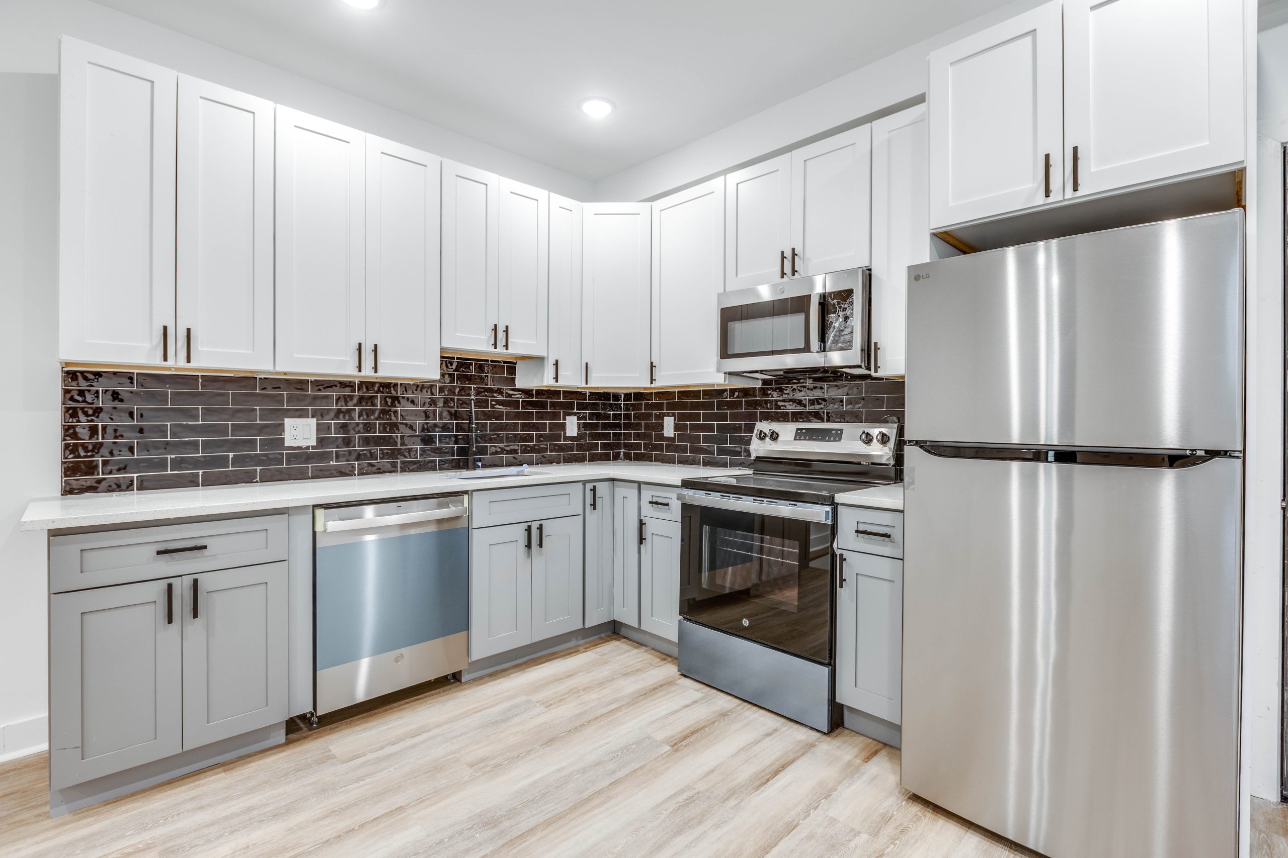 The modern kitchen is equipped with stainless steel appliances, plenty of cabinet space, and a sleek countertop, making meal preparation a breeze. Both bedrooms are generously sized with plenty of closet space.