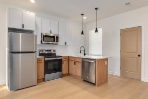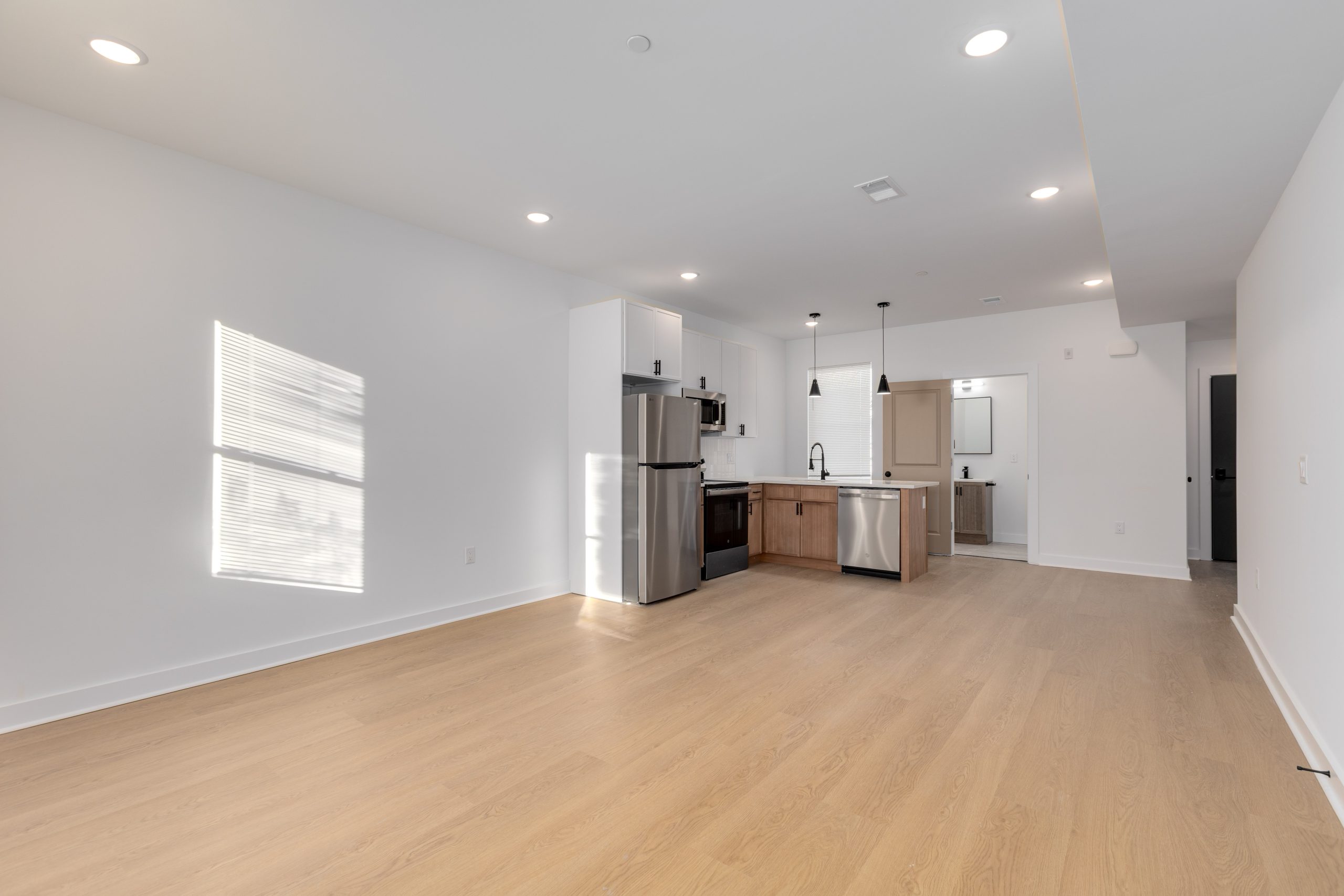 Each bathroom is stylishly designed, with modern fixtures and a clean, contemporary aesthetic. Additional amenities include in-unit laundry, central air conditioning for year-round comfort.