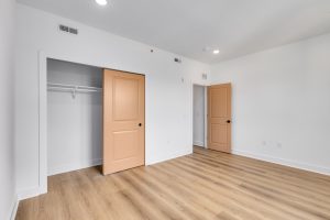 The modern kitchen is equipped with stainless steel appliances, plenty of cabinet space, and a sleek countertop, making meal preparation a breeze. Both bedrooms are generously sized with plenty of closet space.