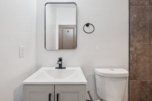 Each bathroom is stylishly designed, with modern fixtures and a clean, contemporary aesthetic. Additional amenities include in-unit laundry, central air conditioning for year-round comfort.
