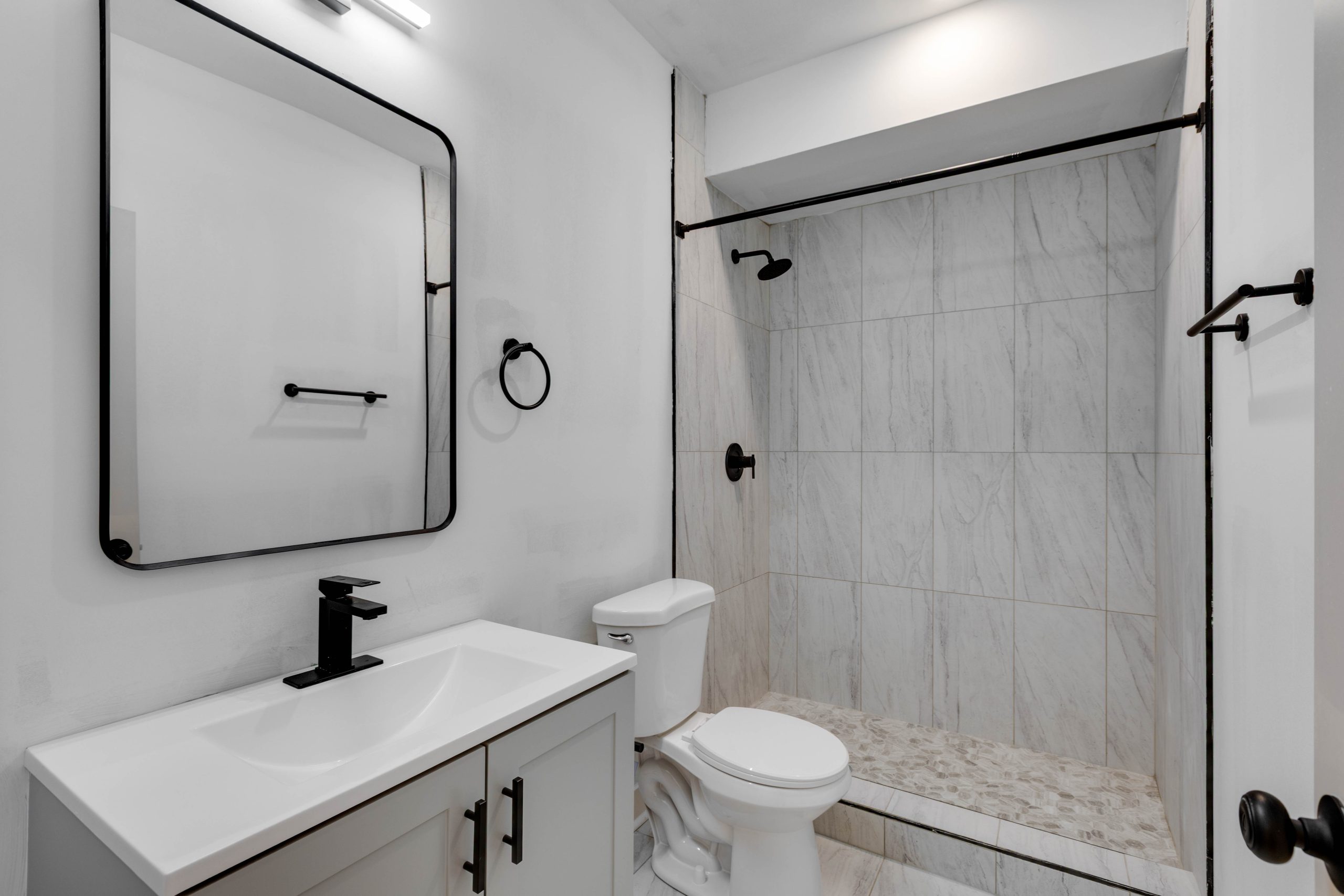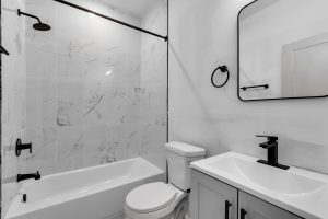 Each bathroom is stylishly designed, with modern fixtures and a clean, contemporary aesthetic. Additional amenities include in-unit laundry, central air conditioning for year-round comfort.