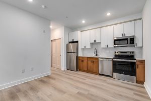 The modern kitchen is equipped with stainless steel appliances, plenty of cabinet space, and a sleek countertop, making meal preparation a breeze. Both bedrooms are generously sized with plenty of closet space.