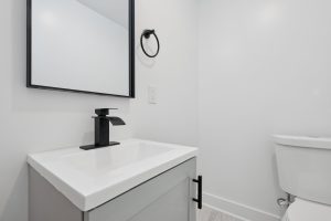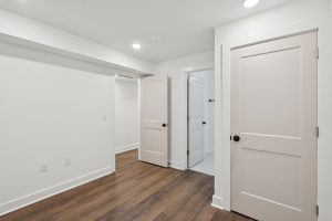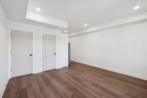 The kitchen is a chef’s dream, featuring stainless steel appliances, granite countertops, custom cabinetry, and a stylish tile backsplash. Sleek pendant lighting and modern fixtures add a touch of elegance.