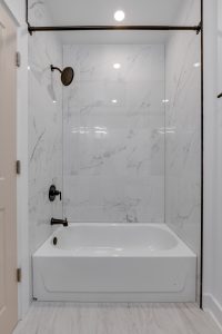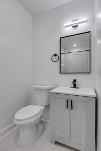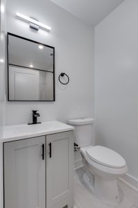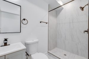 Each bathroom is stylishly designed, with modern fixtures and a clean, contemporary aesthetic. Additional amenities include in-unit laundry, central air conditioning for year-round comfort.