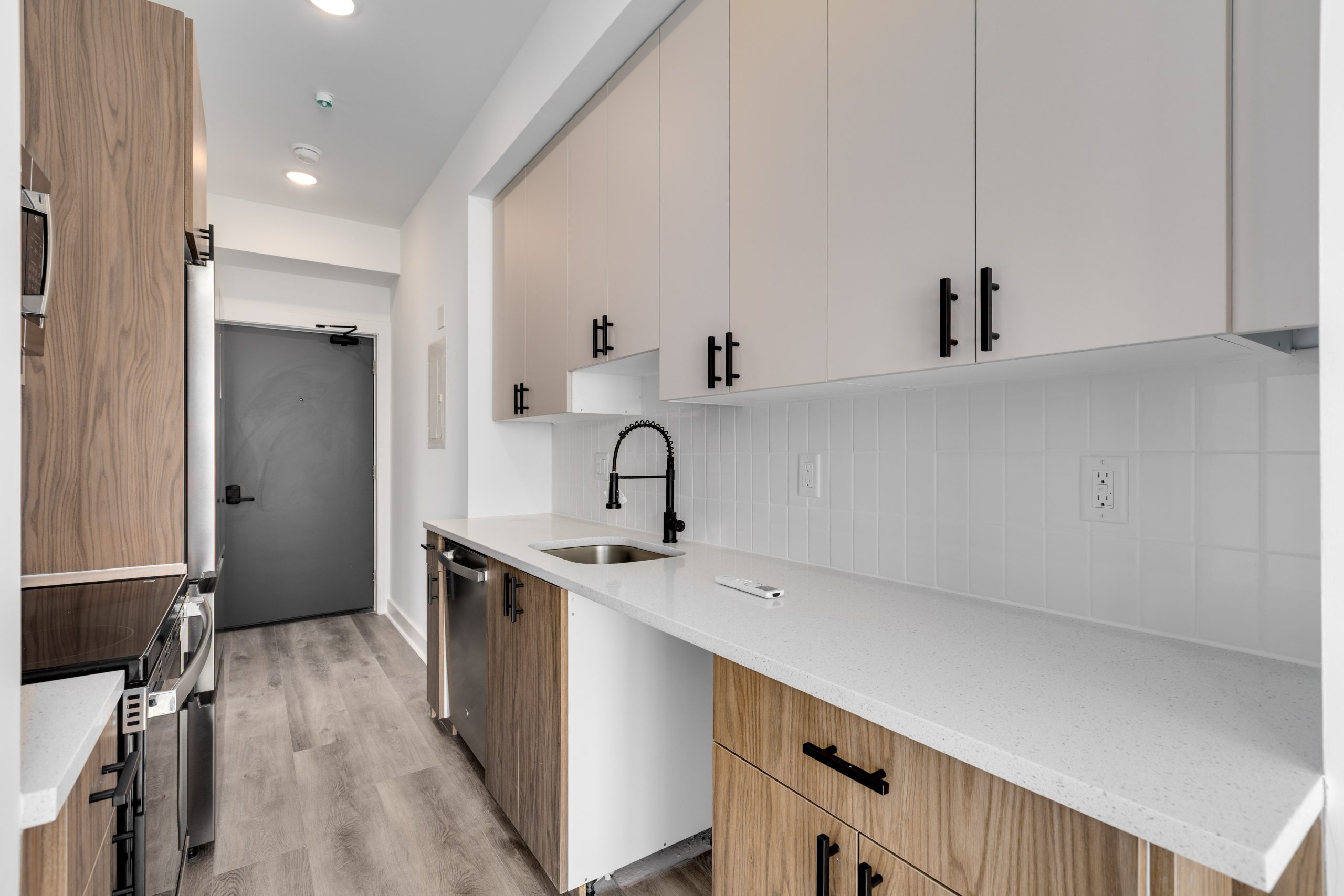 The modern kitchen is equipped with stainless steel appliances, plenty of cabinet space, and a sleek countertop, making meal preparation a breeze. Bedroom is generously sized with of closet space.