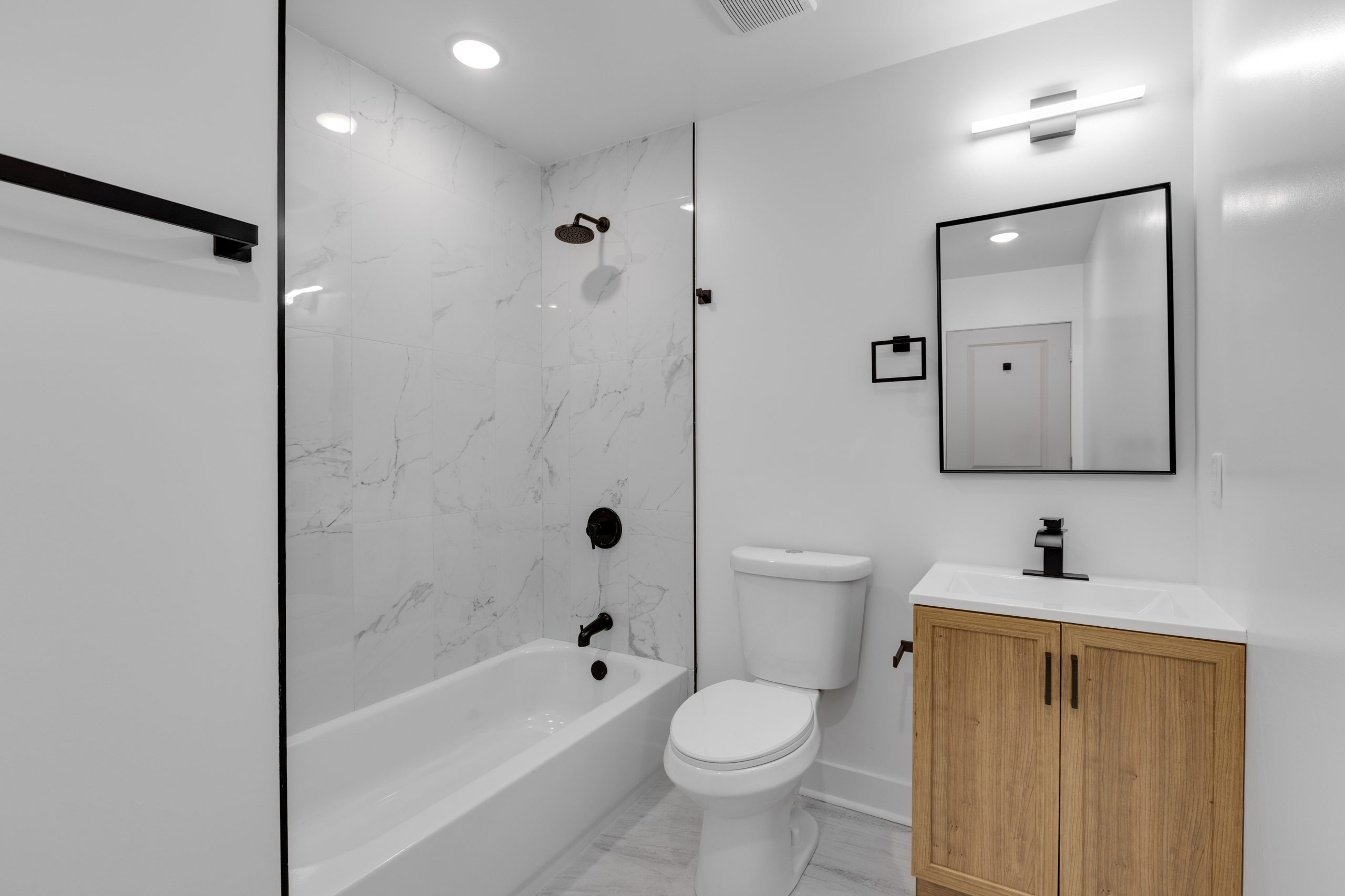 Each bathroom is stylishly designed, with modern fixtures and a clean, contemporary aesthetic. Additional amenities include in-unit laundry, central air conditioning for year-round comfort.