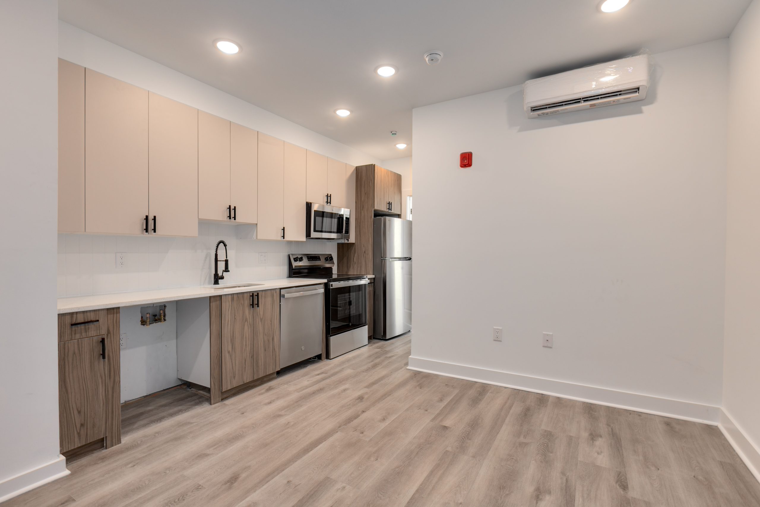 The modern kitchen is equipped with stainless steel appliances, plenty of cabinet space, and a sleek countertop, making meal preparation a breeze. Bedroom is generously sized with of closet space.