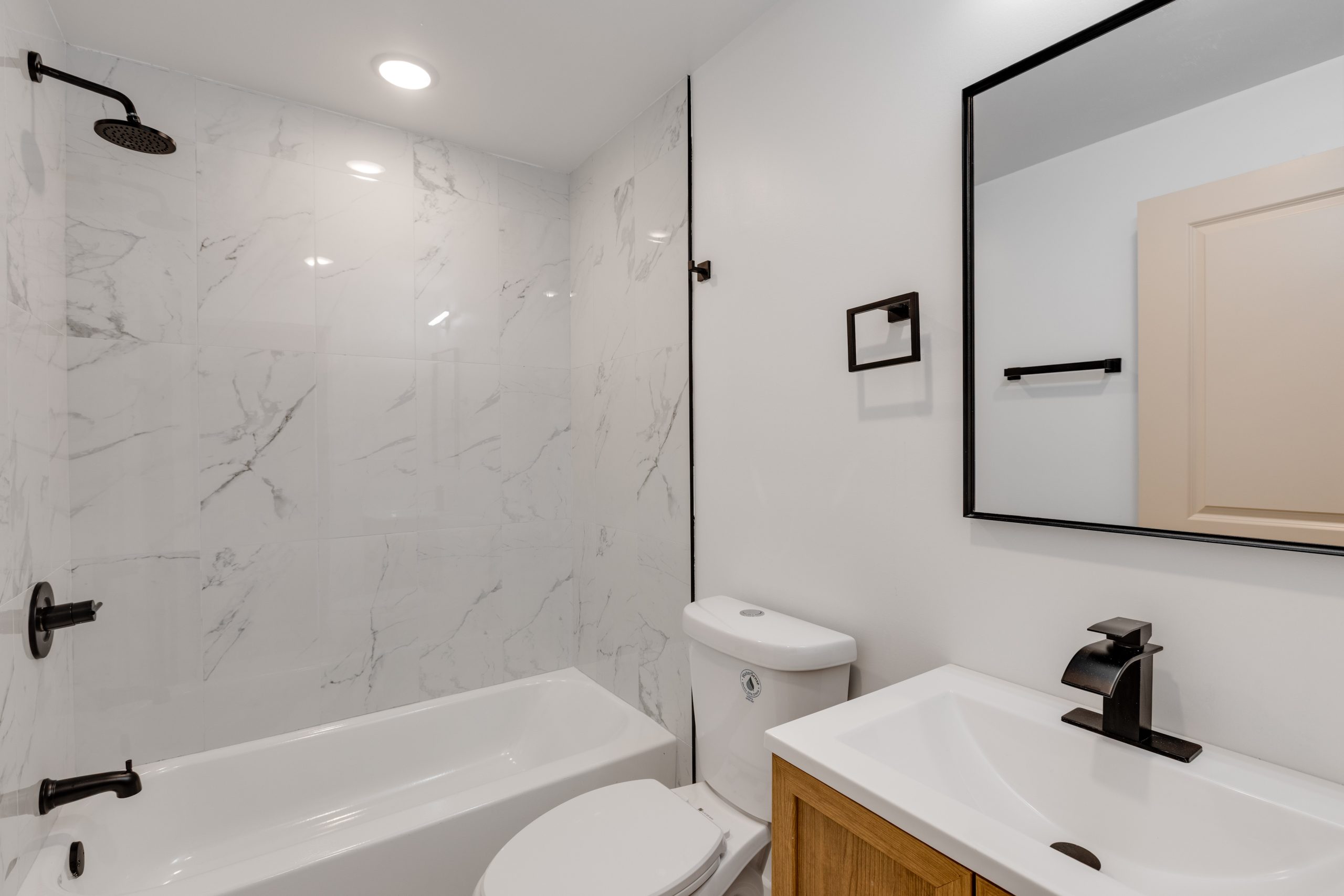 Each bathroom is stylishly designed, with modern fixtures and a clean, contemporary aesthetic. Additional amenities include in-unit laundry, central air conditioning for year-round comfort.
