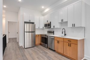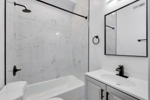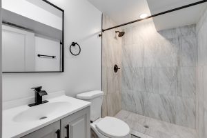 Each bathroom is stylishly designed, with modern fixtures and a clean, contemporary aesthetic. Additional amenities include in-unit laundry, central air conditioning for year-round comfort.